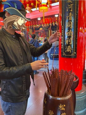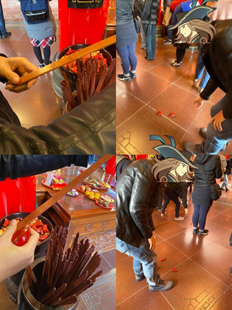 這邊跟大家簡單說明一下拜拜抽籤的流程,首先先在心裡跟媽祖說你的名字,戶籍和出生年月日,接著跟祂說你今天要問的事情後擲杯,如果拿到一個聖杯,代表你可以抽籤