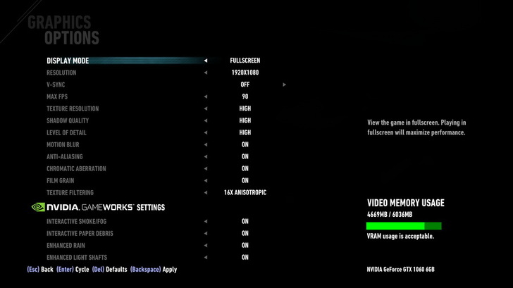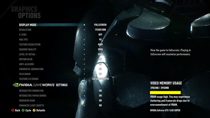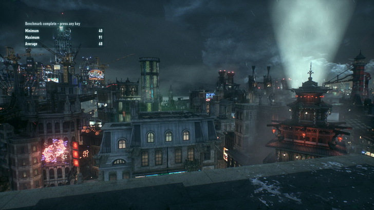 測試的遊戲是 蝙蝠俠:阿卡漢騎士,解析度設定 1920x1080、特效全開。