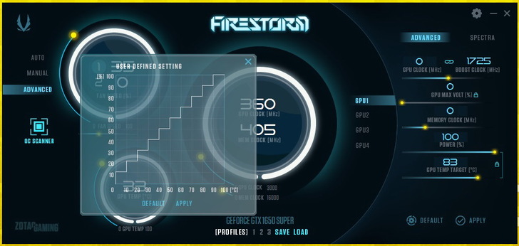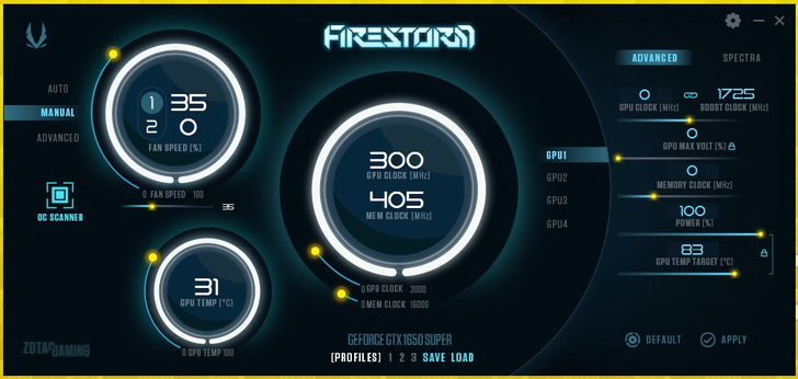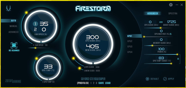FireStorm 是 ZOTAC 研發的先進微調程式。使用介面精簡且易於使用,簡單幾個步驟就可輕鬆地調控 ZOTAC 及 ZOTAC GAMING 顯示卡的功能。