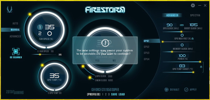 【ZOTAC FIRESTORM 顯卡控制軟體】