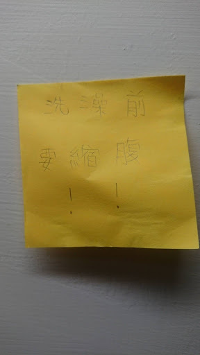 租屋處離健身房有一段距離所以就不考慮了,而我現在的目標是減少肚子的脂肪。很多朋友都說去健身房最好,但我不這麼認為,於是上網查了一下,有一招是用肌肉的力量去縮小腹,且背部一定要挺直,肩膀要放鬆,每天持續30秒~1分鐘就好,幾個禮拜就會有明顯成效,現在我持續了4天了,我在家中的牆壁貼了張便利條,提醒著自己要記得縮小腹,不然我怕我自己會忘記XDD