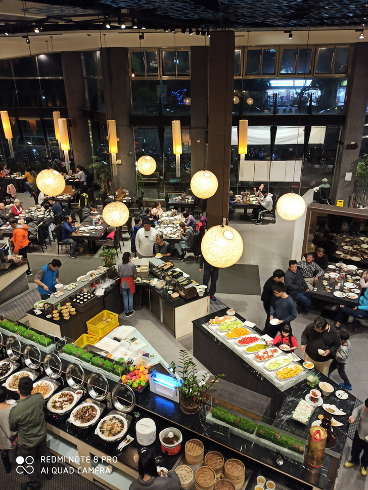 從2樓往下看則是這樣。總之座無虛席,如果你看到有空桌子,不用懷疑,他們只是起身去拿餐點而已。