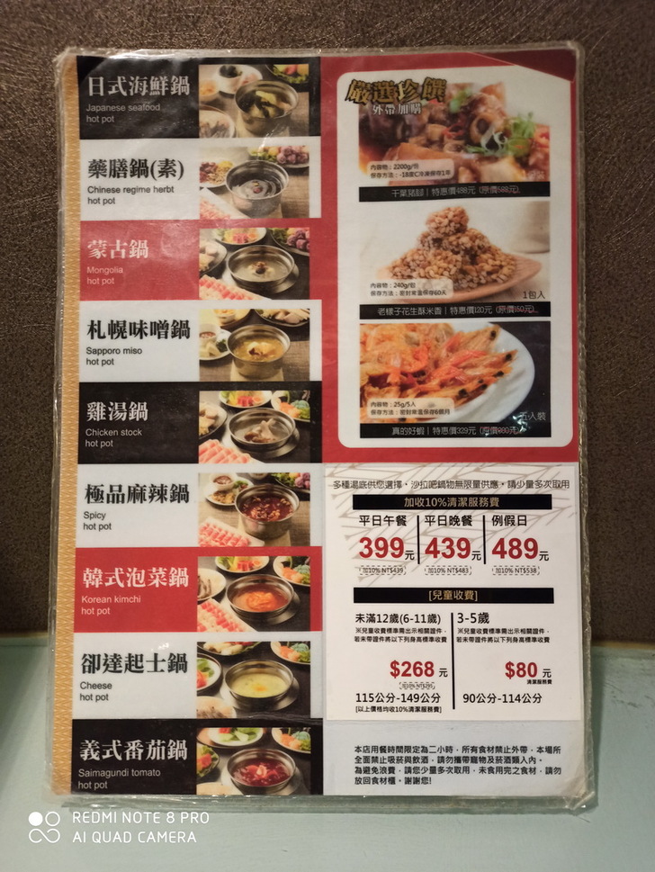 【用餐時間兩小時】,以上價位均加收10%清潔服務費