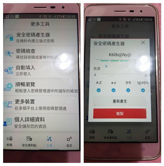 ▲【工具】就是讓使用者可以更加快速的完成想要執行的動作,其中最讓我覺得新奇就是(安全密碼產生器),它利用亂數的方式,產生一個安全密碼,這讓每次都為了密碼想破頭的我,省下了不少麻煩
