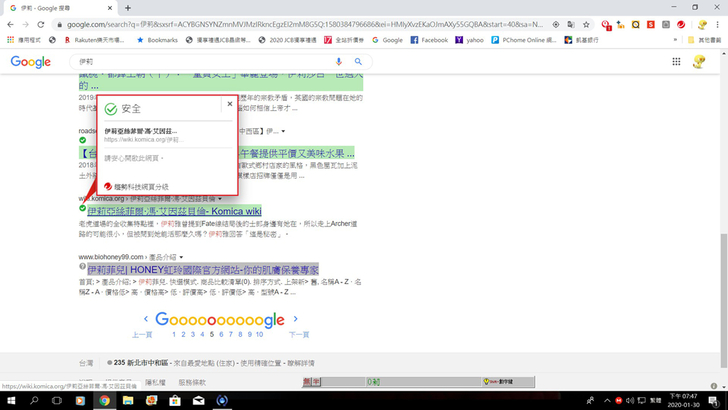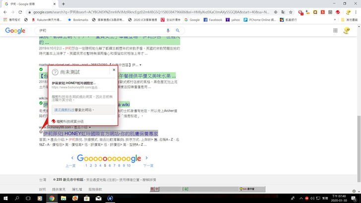 ▲不管是怎樣的網頁,趨勢防毒PC-cillin都會有訊號說明,只要是出現綠色的勾勾,都可以放心的點進去,不用再擔心誤入了有毒的網頁了,這個功能設計真的是不懂電腦的一大福星,至少在使用網頁時,可以先有第一層的防護,這樣可以減少病毒的入侵。