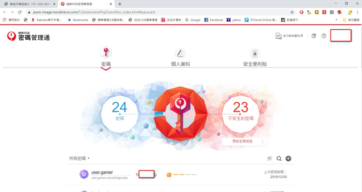 趨勢PC-cillin 2020 雲端版雖然它是個防毒軟體,但它了解使用者有太多的帳號和密碼需要記得,因為現今的網路世界除了網路病毒,也有很多的帳號、密碼被盜用,主要是因為使用者為了怕忘記而設定簡單的密碼,或是一碼多用。所以只要有了密碼管理通這個工具,使用者就不用再擔心設定的密碼忘記,也可以減少一碼多用的機會。