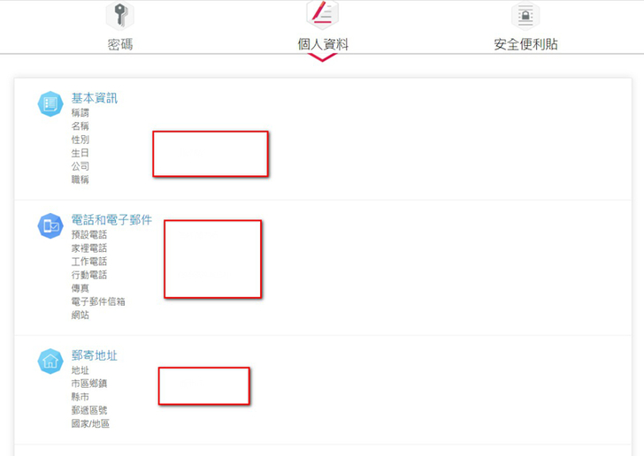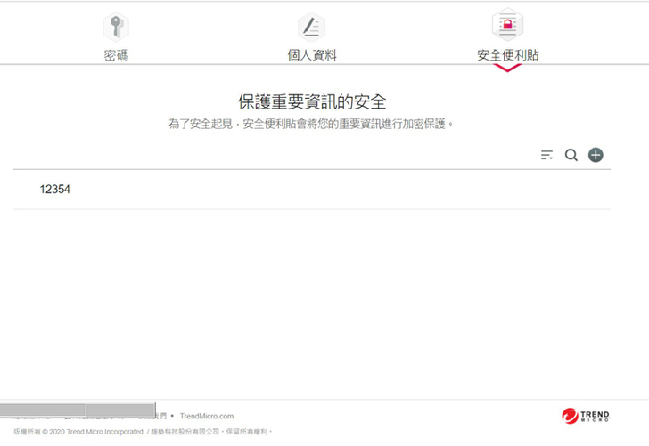 密碼管理通分為三大部份【密碼】、【個人資料】、【安全便利貼】