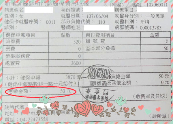 有一點蠻值得稱讚的地方是他們家在看診掛號費用上每次只收取50元,