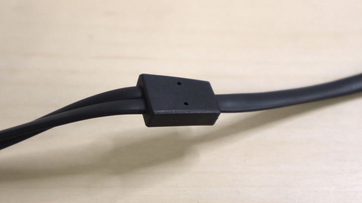 全部線材都是扁線,不易打結,線身也算堅韌,線皮挺硬的,感覺不太容易斷。中間分岔部分是較硬的塑膠,雖然線身沒有緩衝 SR 設計,且造型突兀不協調。但固定放置時拉扯機會應該不像一般充電線那樣高,所以不會太擔心以後斷掉。