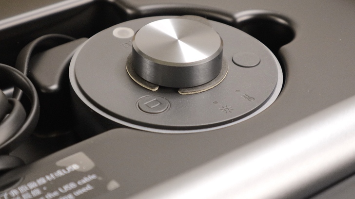 自動根據環境設定的感應器,就是頂部的這顆光源感應器。從側邊也可以看到整個控制盤是斜面的設計,因此在操作上算是方便、順手。希望之後可以進一步優化操作的細節感受,如旋鈕的平衡性,會讓手感進一步提升。