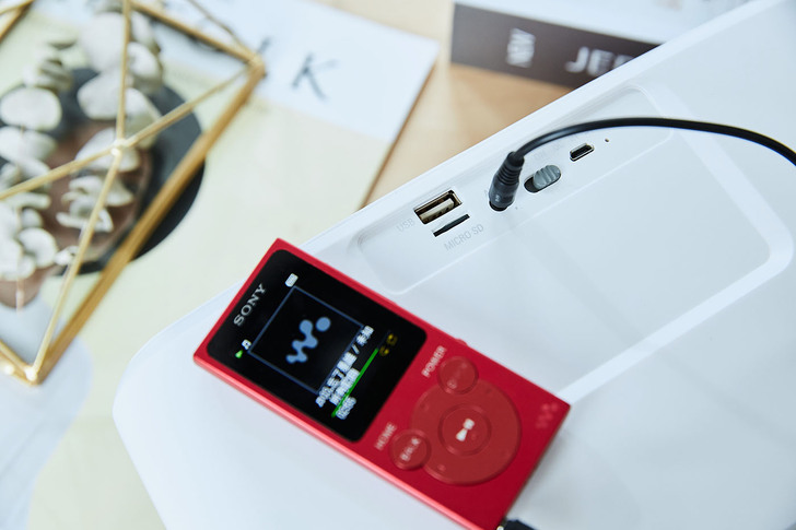 ▲電源鍵與所有插孔集中在機身背面,包括有 Aux-in、TF 記憶卡(最高至 32GB)與 USB(最高至 32GB)。