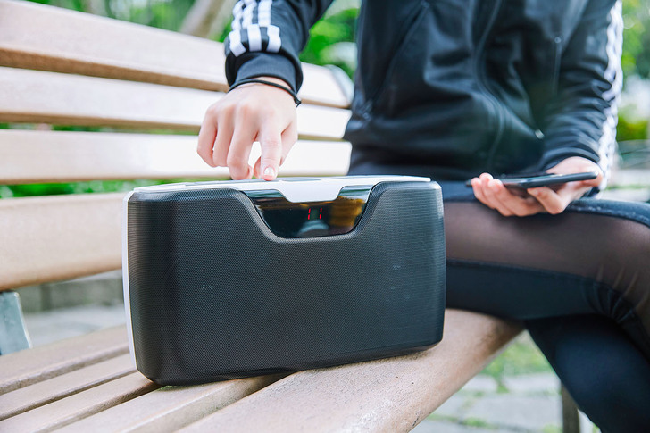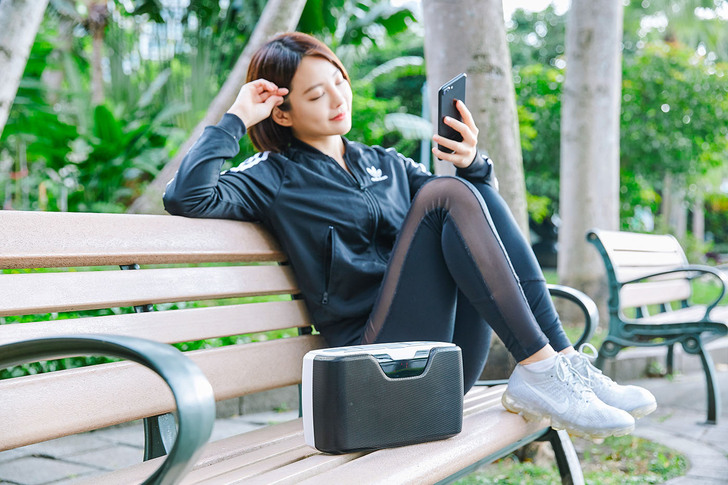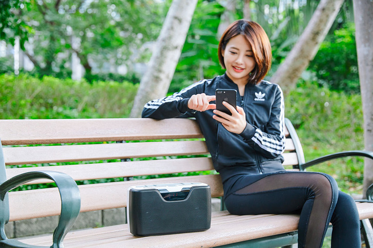 ▲目前音量只調到一半左右,不過在喧嘩的戶外也能清晰聽清楚音樂,就連渾厚的重低音表現也很棒。