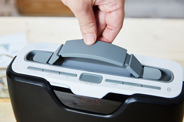 ▲TCSTAR TCS1590 一體式手把設計真的很實用,在戶外使用時隨時都能移動聆聽場域,看起來好像拎著一個會唱歌的便當盒出門XD