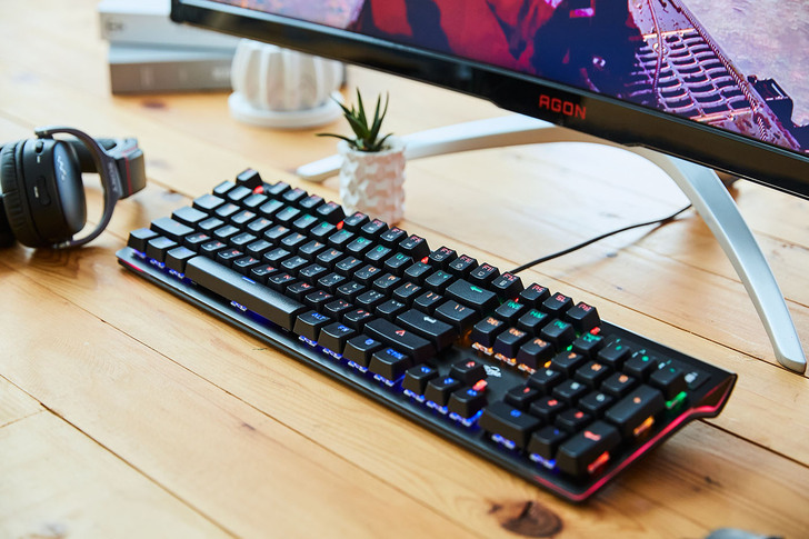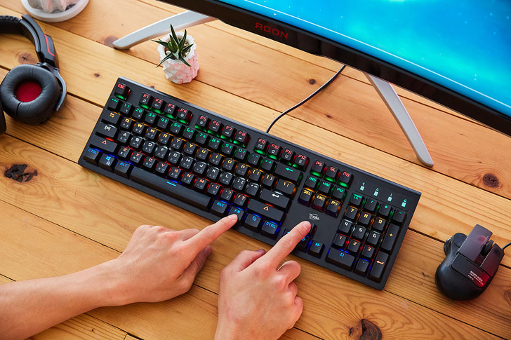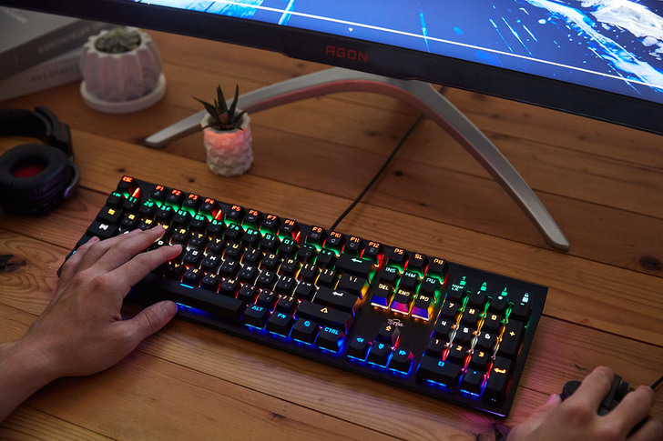 TC STAR TCK809 擁有絕佳敲打手感,無論一般文書打字、或激烈的電競遊戲都適合,繽紛酷炫的燈光效果,也能為操作過程增添不少氣氛;這裡要特別補充說明,雖然燈光效果酷炫華麗,但其實鍵帽散發出的燈光是柔和均勻的,所以使用時並不會感到刺眼,明暗度也提供多段調整,關於這點大可放心。