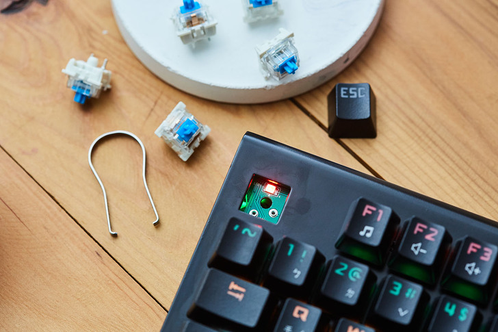 ▲青軸機械結構之所以好敲打,在於所有按鍵階採懸浮式設計,在看不見的下方提供長距離衝程,敲打時的反饋感相當紮實,無論打字或玩 game 都有一定爽度。