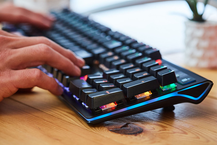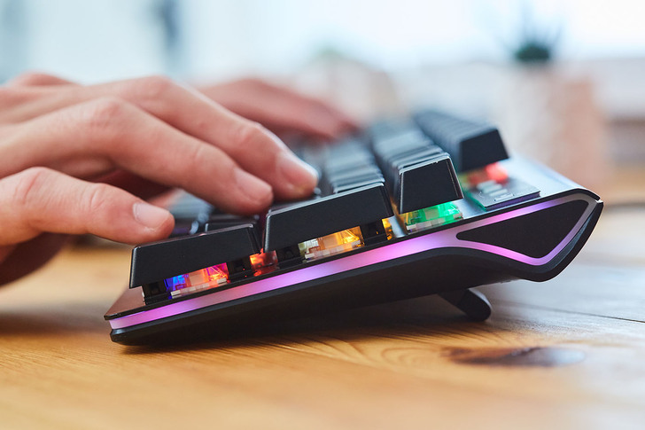 ▲除了按鍵軸體提供絕佳敲感,從鍵盤側面看去可發現,鍵帽曲線以符合人體工學的階梯式呈現,這也是使用時貼合手感的一大關鍵。
