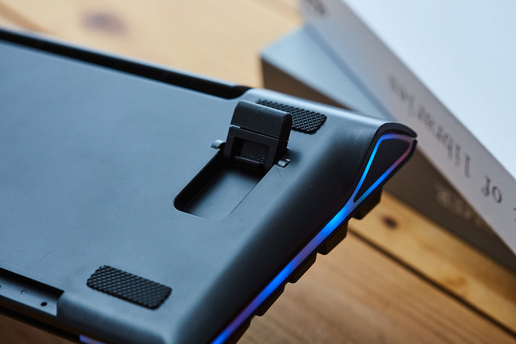 ▲底部配備支撐架,讓使用者可依鍵面斜度調整,搭配加大與加厚的橡膠止滑墊,既能保護桌面也能讓鍵盤不易滑動,另外也能搭配鍵盤手托使用。