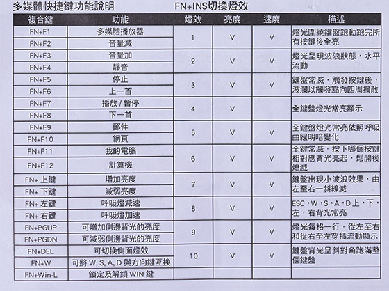▲大部份都是「FN+INS」的組合,無論遊戲或其他娛樂都很方便,基本上只要平時使用 Windows 作業系統都能快速上手。
