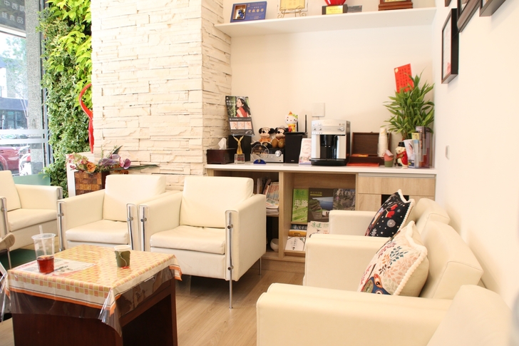 在填寫完基本資料之餘,能聆聽到院內撥放著柔和輕音樂,候診區幾張米白大沙發讓等候的人感受像是回到家,這裡除了擺放可愛的玩偶,還提供了小孩子會接觸到的玩具與童書,除此之外許多雜誌陳列於櫃上可供閱讀,一旁亦有茶水可以飲用,舒適柔軟寬敞沙發一坐下我還真怕深陷其中不太想離開~~XD