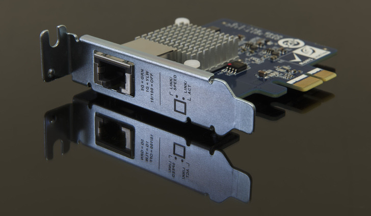 ▲ QXG-10G1T(單埠五速 10GbE 網路擴充卡),透過 PCIe 擴充埠可將網速馬上直衝 10GbE