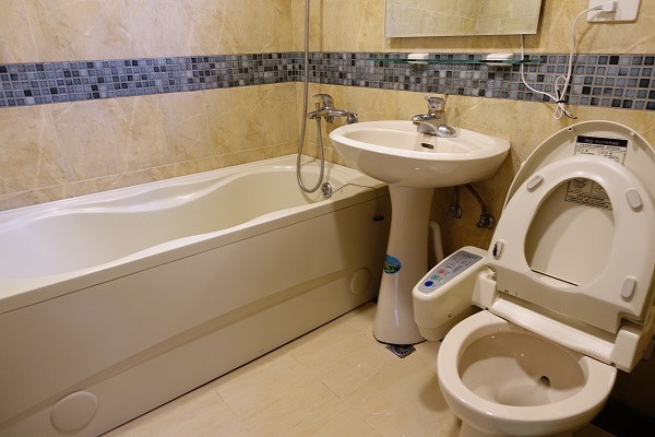 而且他們的衛浴設備也很高級,浴室裡附的是免治馬桶、按摩浴缸,