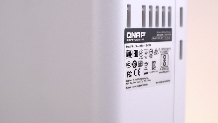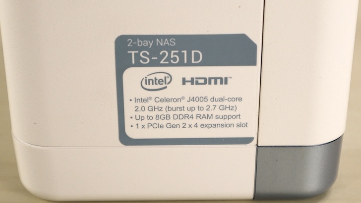 機身底部有產品資訊的貼紙,Made in Taiwan,保固兩年。QNAP TS-251D 以單機一萬元以內定價,還具備 PCIe 擴充,對於想入手第一台 NAS、給家庭成員使用的情境來說,負擔不會太大。