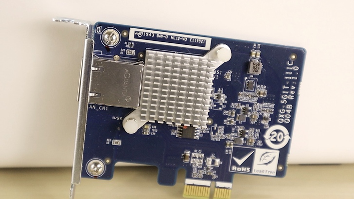 而這次搭配的 PCIe to 5GbE 擴充卡是 QXG-5G1T-111C,主要功能是將 PCIe 轉為 5GbE,採用的方案是 Marvell AQtion AQC111C(Marvell 收購了 AQuantia)。