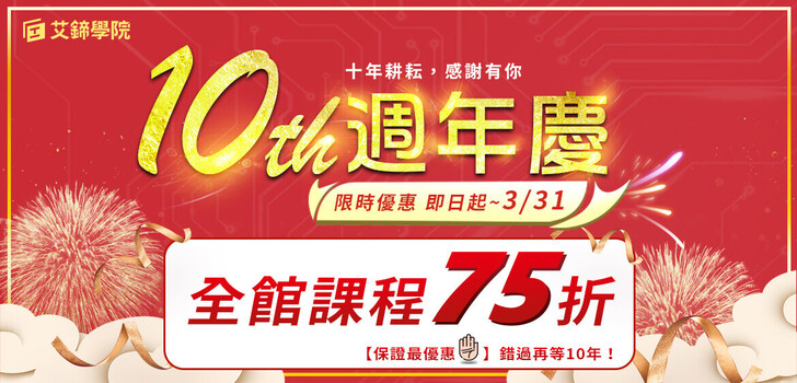 活動網頁👉 https://www.ittraining.com.tw/ittraining/10th_Anniversary/10th_Anniversary.html