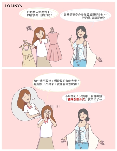 這時候如果穿上蘿琳亞塑身衣,再也不用擔心約會怎麼穿才能隱藏身材缺點,妳可以大方的展現自信完美曲線!