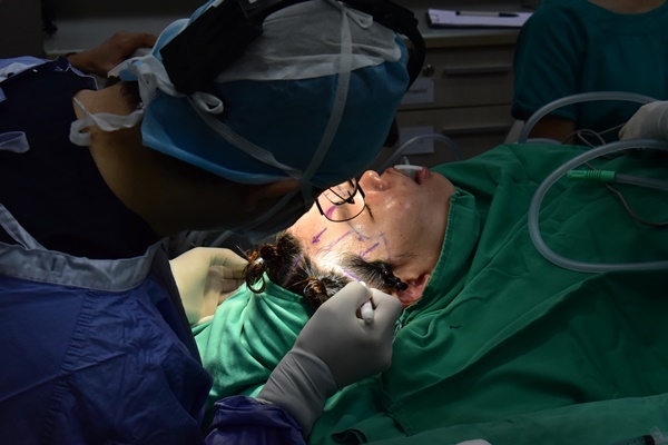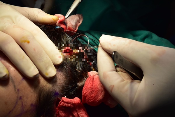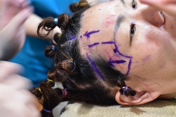 這項手術歷經大約五個小時之久,術前院內漂亮護士拿手術服讓我換上,然後全臉進行卸妝清潔,再將頭髮一搓一搓綁起來做頭皮清理,護士幫忙清潔頭皮時非常細心,因為怕在手術室裡面洗頭會冷,先是將手術檯開著電熱毯再替我蓋上一床厚毛毯保暖,再用特殊的蒸餾水清洗頭皮,接著有專業麻醉師從旁幫忙施打麻醉藥,之後整人就因為麻醉藥起作用內視鏡拉皮手術過程幾乎完全沒有意識