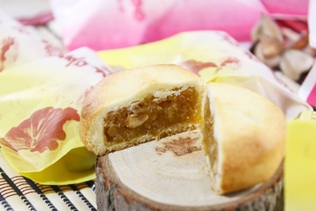 內餡飽滿的鹹味菩提酥,加入了核桃、鳳梨與鹹蛋黃,單看外型小巧可愛,金黃輕薄的模樣很討人喜歡,一口咬下香氣超逼人的,甜鹹的感覺吃了好順口,若是要送人作伴手禮是不錯的選擇,感覺大人小孩就愛這一味!