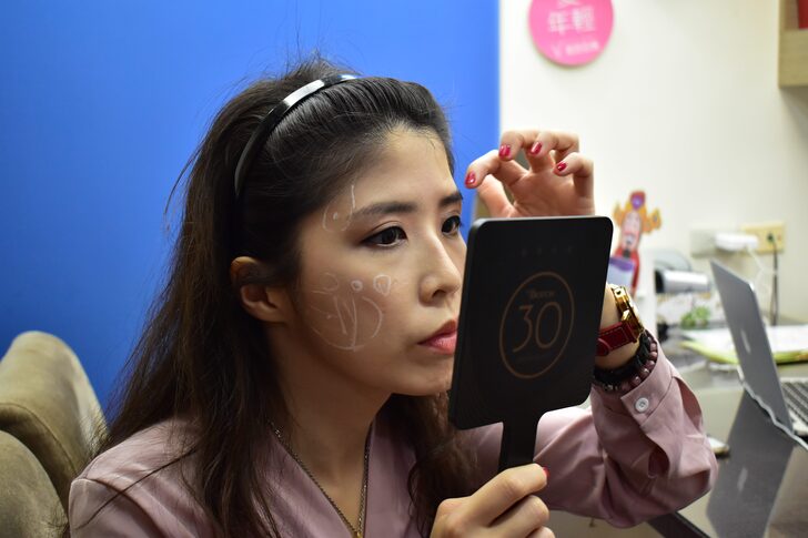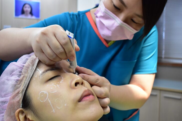 醫師再次確認玻尿酸施作的部位,一樣會先畫在臉上。