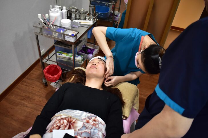 臉部清潔完成接著上麻藥,上完要等30分鐘左右,這時可以起身走動、喝茶、去洗手間等等。