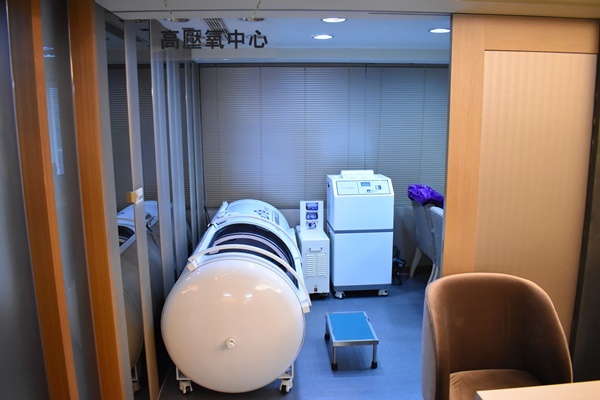 另外一間諮詢室裡面有一台看起來很厲害的儀器,高壓氧艙護士簡單說明介紹這款設備能增加細胞活氧量,讓傷口可以提升復原能力。