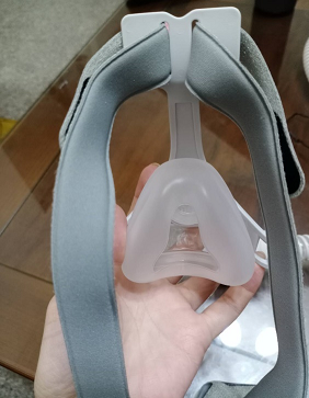 我自己每個禮拜會把面罩跟頭帶分開來泡中性洗碗精,洗一洗搓一搓再掛起來陰乾,只要對好點就可以卡上去,只是老人家可能就會比較吃力,因為不是很明顯,硬壓不知道會不會斷掉就扣不起來?