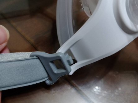 扣子只要輕輕的卡在面罩的框架上就會扣上一點也不費力