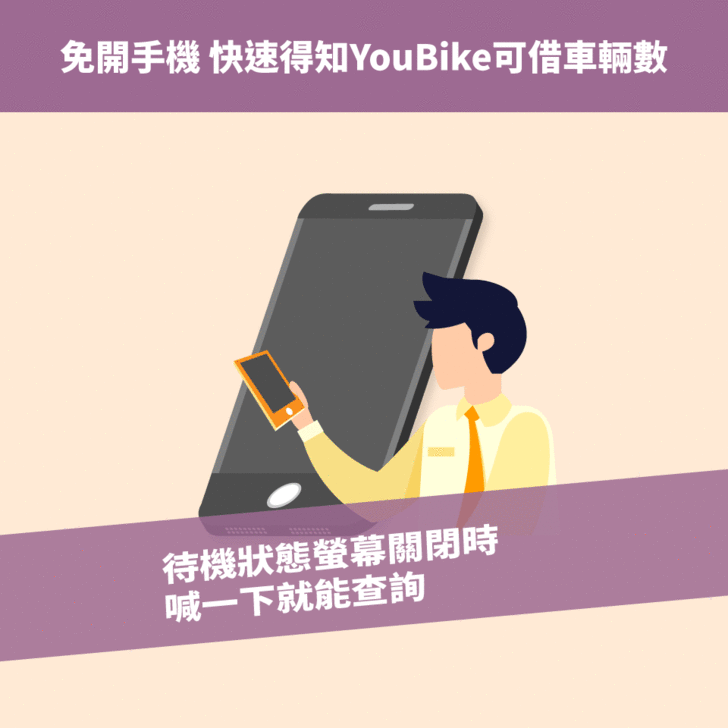 偷偷告訴您一個更便捷的懶人法,只要在Android手機中進行一些簡單設定,(點此參考做法)設定完成後,在螢幕開啟狀態下,說出「OK Google」即可啟動語音助理、召喚YouBike小精靈!像這樣說: