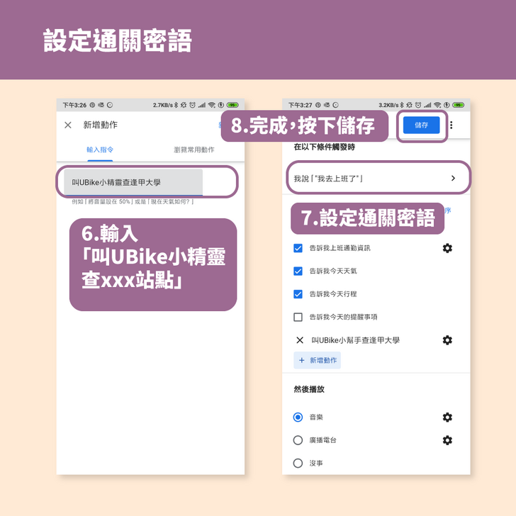 Step8.說出「我要上班了」(可自訂指令),就會順便查詢指定的站點資訊