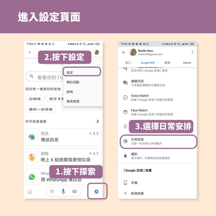 Step3.點選「Google 助理」的分頁,往下找到日常安排