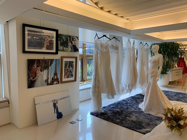 除了各種不同風格的白紗,店裡還有放一些之前的作品,