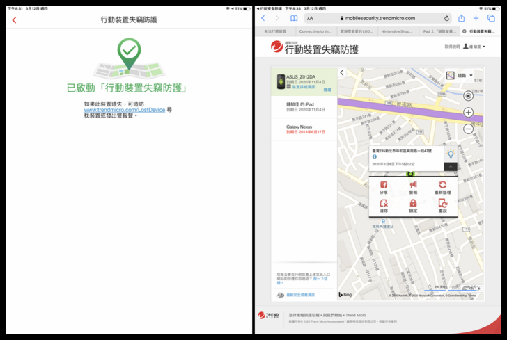 ▲【行動裝置失竊防護】這個功能跟Android 系統差不多,一樣是到趨勢的網站登入後就可以找到囉~