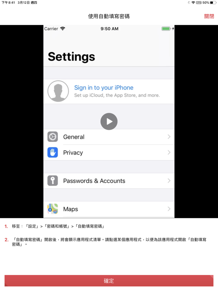 ▲(自動填寫密碼)是針對APP若有帳密時,可以不用再輸入資料,直接進入,因為怕使用者不會設定,趨勢很專業的用影片教學,讓使用者能順利的完成設定