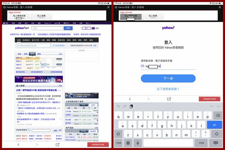 ▲(順暢瀏覽)這是個搜尋引擎,只要到存有帳號和密碼的網站,它就會出現自動貼上的功能框,只要點一下,就能直接貼上,是個很方便的功能