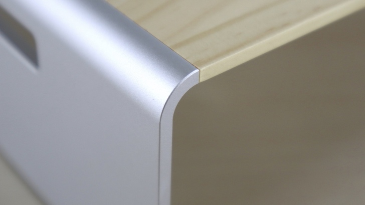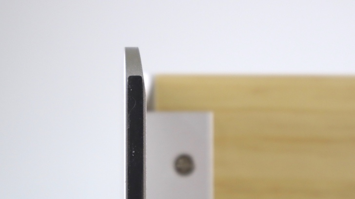 兩邊鋁支架的厚度約為 6mm,相當厚實,放在桌上非常穩。支架與木板的連接也很精準,有些小縫隙是正常,在合理範圍是可以接受的。