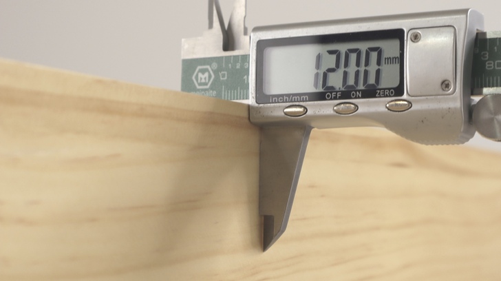 木板的厚度約為 12mm。開箱時明明有確認過木板都沒有碰傷,但自己用不到一個禮拜,木板邊緣就在完全不知情的狀況下出現三個傷痕,甚是可惜。不知道未來有沒有機會用硬一點的木質材料,減少這樣的憾事 QQ