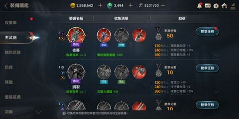 武器往上強化需要強化材料,強化到一定等級便可覺醒,拿到名稱品階相同的武器則可以用作突破。