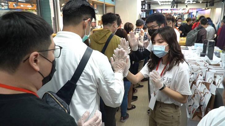 業者強調,防範疫情不鬆懈,特意為米粉準備口罩、手套、酒精等全副武裝。此外,工作人員也在現場不斷消毒,為米粉做好防疫。米粉、店員雙雙戴著手套擊掌歡迎,形成有趣畫面。