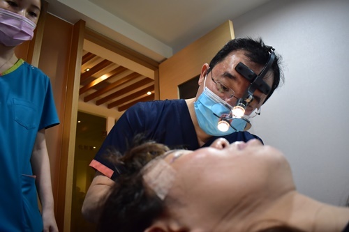 再來就是要同時處理淚溝:有些人會做外部脂肪移植,盡量將凹陷處填平,但我認為,除了眼袋脂肪太少的人,最好的方法還是要將眼眶下緣韌帶放鬆,用轉位的脂肪,讓眼瞼和臉頰交界撫平,這樣也能同時處理眼袋。