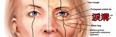 淚溝是指由內眼角開始出現在下眼瞼靠鼻側的一條凹溝,是由於眼眶隔膜下緣的軟組織萎縮、下垂而生成的,有的人甚至可延伸到臉頰。