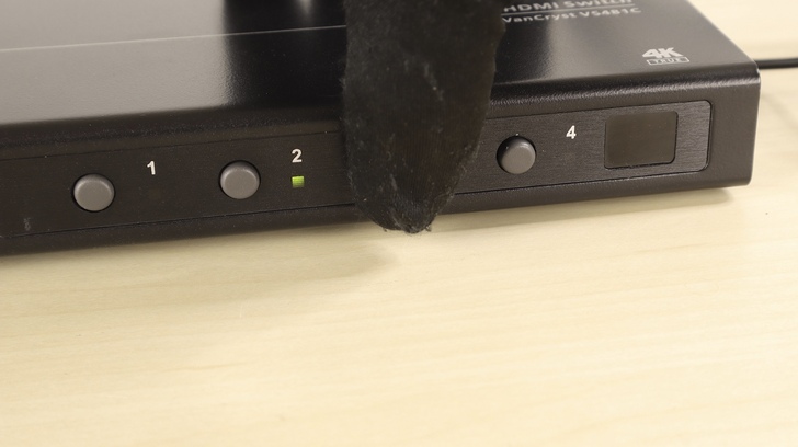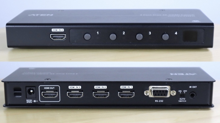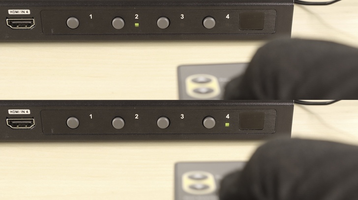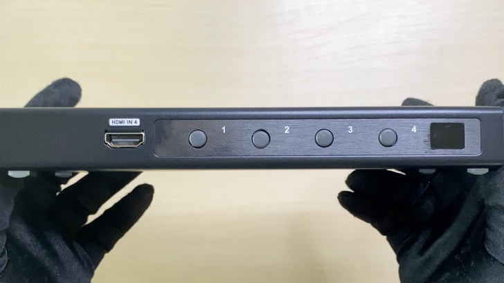 正面有一個 HDMI input,中間面板則包含了四個按鈕,可以點按切換輸出。也有紅外線接收器可以用遙控器控制,切換速度也非常快,沒有明顯的延遲。